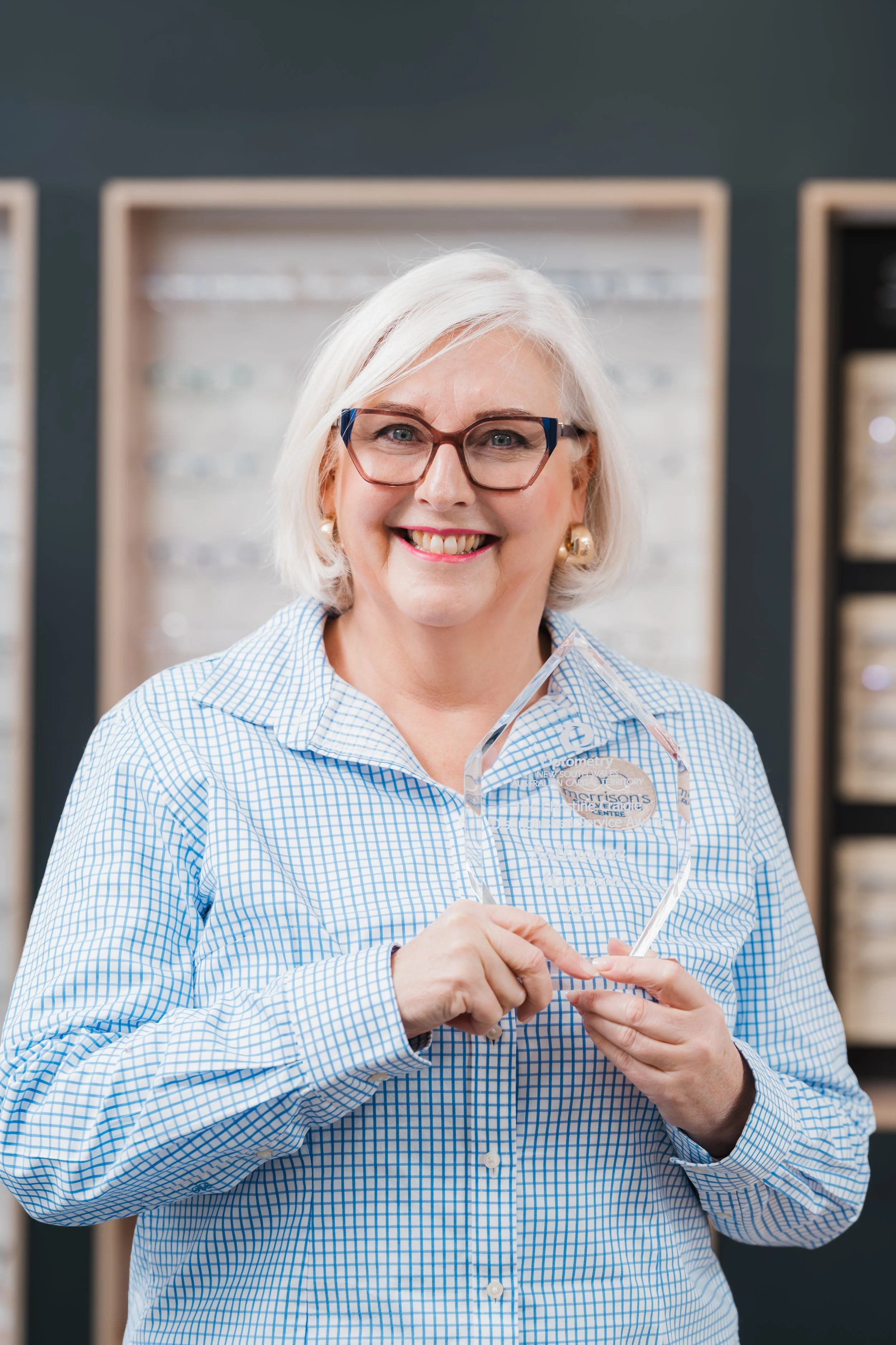 In July 2025, Sallyanne was named the inaugural recipient of the Christine Craigie Distinguished Service Award, presented at Super Sunday, Optometry NSW/ACT’s flagship conference at the International Convention Centre in Sydney.